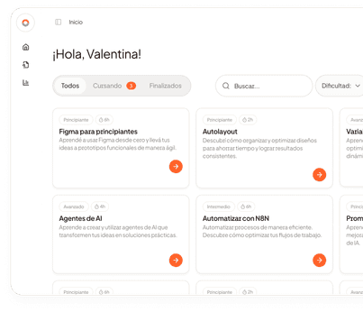 Cada curso está diseñado para aplicar lo aprendido desde el primer día, con proyectos reales y desafíos guiados.